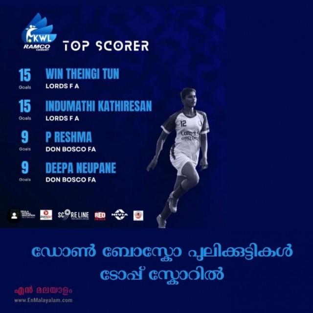 കേരളാ വുമൺസ് ലീഗിൽ ടോപ്പ് സ്കോറർ ലിസ്റ്റ് പ്രസിദ്ധീകരിക്കുമ്പോൾ ആദ്യ നാലു സ്ഥാനങ്ങളിൽ ഡോൺ ബോസ്കോ പുലിക്കുട്ടികളും.