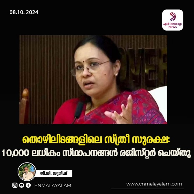 തൊഴിലിടങ്ങളിലെ സ്ത്രീ സുരക്ഷ: 10,000 ലധികം സ്ഥാപനങ്ങള് രജിസ്റ്റര് ചെയ്തു.