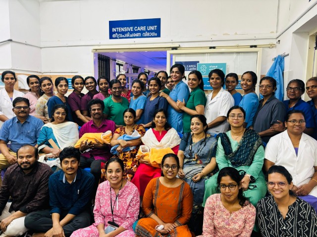 നവജാത ശിശുരോഗ വിഭാഗം മേധാവി ഡോ. ഫെബി ഫ്രാന്സിസിന്റേയും ശിശുരോഗ വിഭാഗം മേധാവി ഡോ. അജിത് കുമാറിന്റേയും നേതൃത്വത്തില് ഡോ. വിഷ്ണു ആനന്ദ്, ഡോ. മേധ മുരളി, ഡോ. നാഗാര്ജുന്, ഡോ. ലിറ്റ, ഡോ. ആതിര, മറ്റ് ജൂനിയര് ഡോക്ടര്മാര് എന്നിവരാണ് ചികിത്സ നല്കിയത്. ഹെഡ് നഴ്സുമാരായ സീന, സജ്ന എന്നിവരുടെ നേതൃത്വത്തിലുള്ള നഴ്സുമാരുടെയും മറ്റ് എന്ഐസിയു ജീവനക്കാരുടേയും പരിശ്രമ ഫലമായാണ് ഇത് സാധ്യമായത്. മൂന്ന് കുഞ്ഞുങ്ങള്ക്കും 3 മാസം വരെ പരിപൂര്ണമായി മുലപ്പാല് ഉറപ്പുവരുത്തിയത് നവജാതശിശു വിഭാഗത്തില് പ്രവര്ത്തിക്കുന്ന സമഗ്ര മുലയൂട്ടല് പരിപാലന ക്രേന്ദത്തിലെ ജീവനക്കാരും നഴ്സുമാണ്.