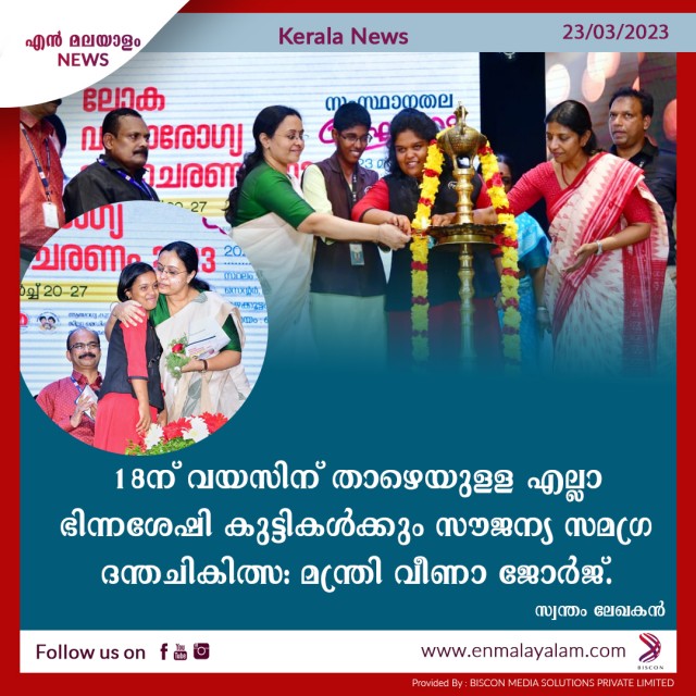 18ന് വയസിന് താഴെയുള്ള എല്ലാ ഭിന്നശേഷി കുട്ടികള്ക്കും സൗജന്യ സമഗ്ര ദന്തചികിത്സ: മന്ത്രി വീണാ ജോര്ജ്.