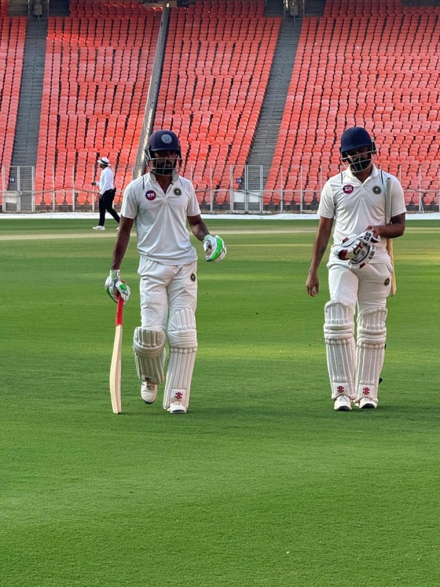 നാല് വിക്കറ്റിന് 206 റൺസെന്ന നിലയിൽ ബാറ്റിങ് തുടങ്ങിയ കേരളത്തിന് രണ്ടാം പന്തിൽ തന്നെ ക്യാപ്റ്റൻ സച്ചിൻ ബേബിയുടെ വിക്കറ്റ് നഷ്ടമായി. 69 റൺസെടുത്ത സച്ചിൻ ബേബിയെ അർസൻ നാഗ്സവെല്ലയാണ് പുറത്താക്കിയത്.തുടർന്ന് ആറാം വിക്കറ്റിൽ ഒത്തു ചേർന്ന സൽമാൻ നിസാറിൻ്റെയും മൊഹമ്മദ് അസറുദ്ദീൻ്റെയും കൂട്ടുകെട്ടാണ് വീണ്ടുമൊരിക്കൽ കൂടി കേരളത്തിന് നിർണ്ണായകമായത്. വളരെ കരുതലോടെയാണ് ഇരുവരും ഇന്നിങ്സ് മുന്നോട്ട് നീക്കിയത്. മൈതാനത്തിൻ്റെ എല്ലായിടങ്ങളിലേക്കും ഷോട്ടുകൾ പായിച്ച അസറുദ്ദീൻ 175 പന്തുകളിൽ നിന്നാണ് സെഞ്ച്വറി തികച്ചത്. രഞ്ജിയിൽ അസറുദ്ദീൻ്റെ രണ്ടാം സെഞ്ച്വറിയായിരുന്നു ഇത്. വൈകാതെ അർദ്ധ സെഞ്ച്വറി തികച്ച സൽമാൻ നിസാർ 52 റൺസെടുത്ത് നില്ക്കെ വിശാൽ ജയ്സ്വാളിൻ്റെ പന്തിൽ എൽബിഡബ്ല്യു ആയി പുറത്തായി. ഇരുവരും ചേർന്ന് 149 റൺസാണ് ആറാം വിക്കറ്റിൽ കൂട്ടിച്ചേർത്തത്. സീസണിൽ ഇത് മൂന്നാം തവണയാണ് ഇരുവരും ചേർന്നുള്ള കൂട്ടുകെട്ടിൽ 100 റൺസിലേറെ പിറക്കുന്നത്.