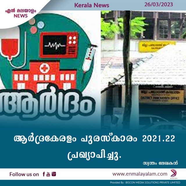 ആര്ദ്രകേരളം പുരസ്കാരം 2021-22 പ്രഖ്യാപിച്ചു.