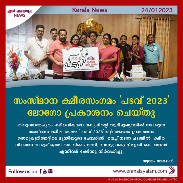 സംസ്ഥാന ക്ഷീരസംഗമം "പടവ് 2023" ലോഗോ പ്രകാശനം ചെയ്തു.