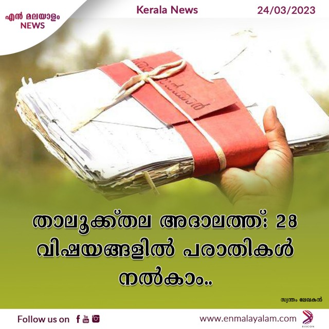 താലൂക്ക്തല അദാലത്ത്: 28 വിഷയങ്ങളില് പരാതികള് നല്കാം..