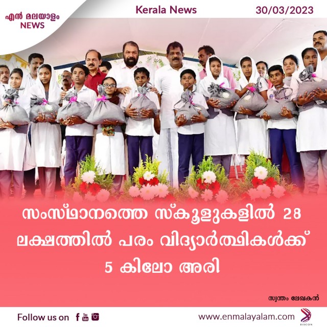 സംസ്ഥാനത്തെ സ്കൂളുകളിൽ 28 ലക്ഷത്തിൽ പരം വിദ്യാർത്ഥിക്ക് 5 കിലോ അരി