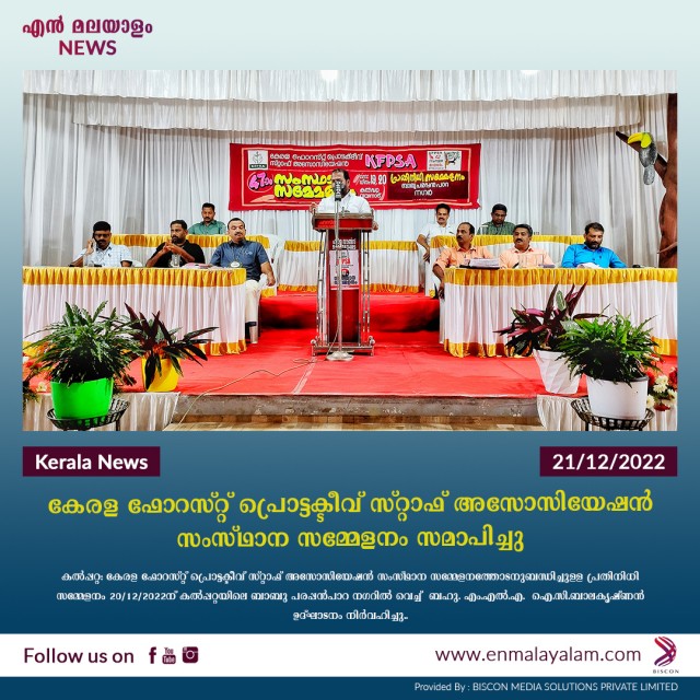 കേരള ഫോറസ്റ്റ് പ്രൊട്ടക്ടീവ് സ്റ്റാഫ് അസോസിയേഷൻ സംസ്ഥാന സമ്മേളനം സമാപിച്ചു.