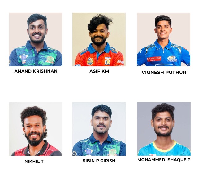 കെ.എം.ആസിഫും നിഖിൽ തോട്ടത്തിലും കൊച്ചി ബ്ലൂ ടൈഗേഴ്സിന് വേണ്ടിയാകും ഗ്രൗണ്ടിലിറങ്ങുക. ആനന്ദ് കൃഷ്ണൻ,സിബിൻ ഗിരീഷ്, മുഹമ്മദ് ഇസ്ഹാഖ് എന്നിവർ തൃശൂർ ടൈറ്റൻസിന് വേണ്ടി കളിക്കും. ഈ സീസണിൽ ഏവരും ഉറ്റുനോക്കുന്ന ശ്രദ്ധേയമായ താരങ്ങളുടെ പട്ടികയിലാണ് വിഗ്നേഷിന്റെ സ്ഥാനം. ഐപിഎൽ കഴിഞ്ഞ സീസണിൽ മുബൈ ഇന്ത്യൻസിനായി ബൌൾ ചെയ്ത താരമാണ് വിഘ്നേഷ് പുത്തൂർ. നിർണ്ണായക സന്ദർഭങ്ങളിൽ റണ്ണൊഴുക്ക് തടയുന്നതിനും വിക്കറ്റ് നേടുന്നതിനും മിടുക്കുള്ള താരമാണ് ഇദ്ദേഹം. 3.75 ലക്ഷം രൂപയ്ക്കാണ് ആലപ്പി റിപ്പിൾസ് ഈ 24 കാരനെ ടീമിൽ നിലനിർത്തിയത്.