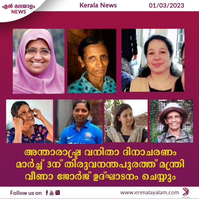 അന്താരാഷ്ട്ര വനിതാ ദിനാചരണം മാര്ച്ച് 3-ന് തിരുവനന്തപുരത്ത് മന്ത്രി വീണാ ജോര്ജ് ഉദ്ഘാടനം ചെയ്യും