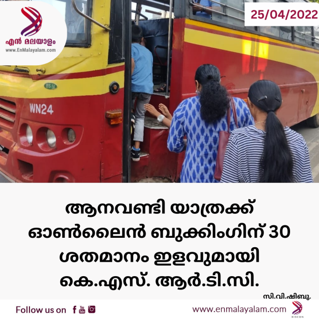 ആനവണ്ടി യാത്രക്ക് ഓൺലൈൻ ബുക്കിംഗിന് 30 ശതമാനം ഇളവുമായി കെ.എസ്. ആർ.ടി.സി.