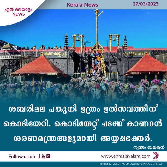 ശബരിമല പങ്കുനി ഉത്രം ഉൽസവത്തിന് കൊടിയേറി. കൊടിയേറ്റ് ചടങ്ങ് കാണാൻ ശരണമന്ത്രങ്ങളുമായി അയ്യപ്പഭക്തർ.