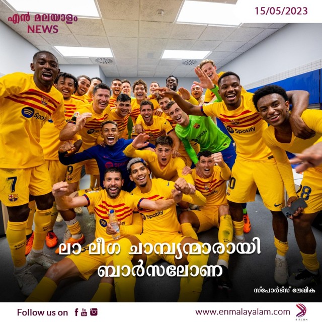 ലാ ലീഗ ചാമ്പ്യന്മാരായി ബാർസലോണ; എസ്പാനിയോളിനെ 4-2 ന് തകർത്തു