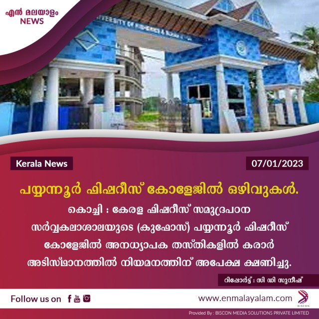 പയ്യന്നൂർ ഫിഷറീസ് കോളേജിൽ ഒഴിവുകൾ.