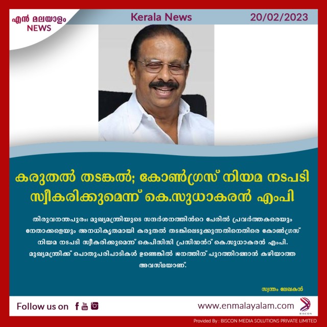 കരുതല് തടങ്കല്; കോണ്ഗ്രസ് നിയമ നടപടി സ്വീകരിക്കുമെന്ന് കെ.സുധാകരന് എംപി