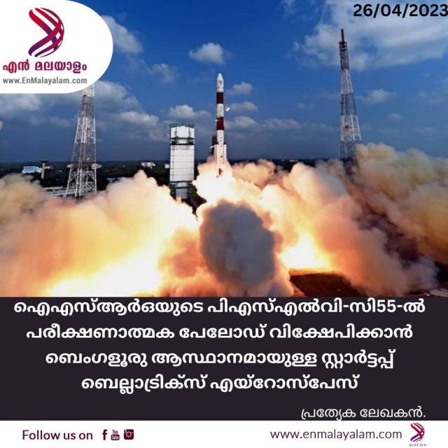 ഐഎസ്ആർഒയുടെ പിഎസ്എൽവി-സി55-ൽ പരീക്ഷണാത്മക പേലോഡ് വിക്ഷേപിക്കാൻ ബെംഗളൂരു ആസ്ഥാനമായുള്ള സ്റ്റാർട്ടപ്പ് ബെല്ലാട്രിക്സ് എയ്റോസ്പേസ്