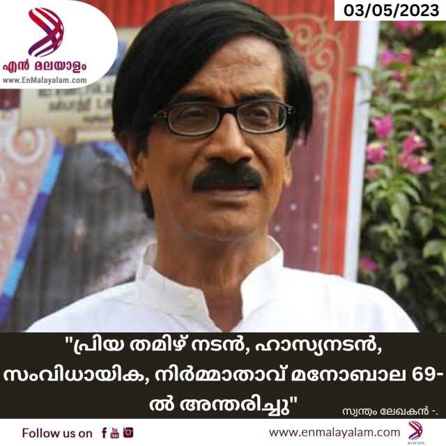 "പ്രിയ തമിഴ് നടൻ, ഹാസ്യനടൻ, സംവിധായിക, നിർമ്മാതാവ് മനോബാല 69-ൽ അന്തരിച്ചു"