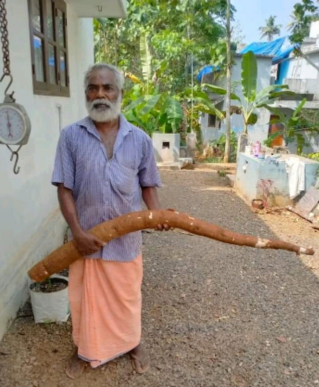 കൗതുകകരമായ കപ്പ - ഒരു ചുവട് കപ്പയിലെ ഒരു കപ്പ് കിഴങ്ങിന് തൂക്കം 7 - അര കിലോ ഗ്രാം.