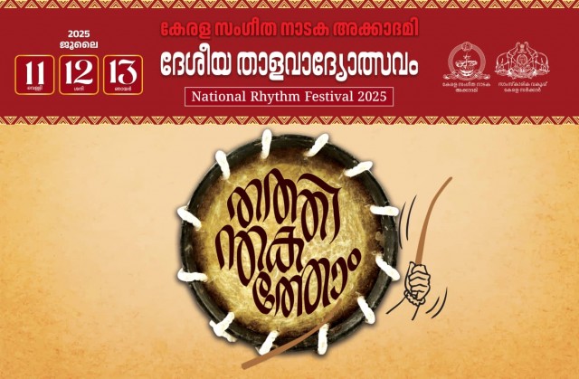 വാദ്യത്തിന്റെയും താളത്തിന്റെയും കുതിപ്പുകളും കയ്യടക്കങ്ങളും കണ്ടും കേട്ടും കോരിത്തരിച്ച തൃശ്ശൂരിന്റെ മണ്ണില്, ചെണ്ടപ്പുറത്ത് കോലു വീഴുമ്പോള് കൈകളുയര്ത്തി ആരവത്തോടെ താളം പിടിക്കുന്ന മേളപ്രേമികളുടെ നാട്ടില്, കേരള സംഗീത നാടക അക്കാദമിയുടെ നേതൃത്വത്തില് ചരിത്രത്തിലെ ആദ്യ താളവാദ്യോത്സവത്തിന് കേളികൊട്ട് ഉയരാന് തുടങ്ങുന്നു. കേരളത്തിലേതുള്പ്പെടെയുള്ള വ്യത്യസ്ത താളപദ്ധതികള് ഒരു കുടക്കീഴില് കൊണ്ടുവന്ന് താളപ്രണയികളുടെ അകം നിറയ്ക്കാന് അവസരം ഒരുക്കുന്ന ഈ വാദ്യോത്സവം അക്കാദമിയുടെ ചരിത്രത്തില്ത്തന്നെ ആദ്യസംരംഭമാണ് . ജൂലൈ 11 മുതല് മൂന്ന് ദിവസങ്ങളിലായിട്ടാണ് തത്തിന്തകത്തോം എന്ന് പേരിട്ടിരിക്കുന്ന ദേശീയ താളവാദ്യോത്സവം നടത്തുന്നത്. കൈവിരലുകളില് താളപ്രപഞ്ചത്തെ പകര്ത്തിയ ഉസ്താദ് സാക്കിര് ഹുസൈനുള്ള സ്മരണാഞ്ജലി എന്ന നിലയിലാണ് പരിപാടി രൂപകല്പന ചെയ്തിരിക്കുന്നത്. കേരളീയ വാദ്യകലയ്ക്ക് പകരംവയ്ക്കാവുന്ന മറ്റൊരു വാദ്യസങ്കേതം ലോകത്ത് എവിടെയുമില്ല എന്നതുതന്നെയാണ് ഈ വാദ്യോത്സവത്തെ വേറിട്ടതാക്കുന്നത്. കേരളീയ താളങ്ങളുടെയും ദേശീയതലത്തിലുള്ള താളസംസ്കൃതിയുടെയും വിസ്മയാവഹമായ പകര്ന്നാട്ടമായ ഈ വാദ്യോത്സവത്തിന് ജൂലൈ 11 ന് കാലത്ത് ഒന്പത് മണിക്ക് നടക്കുന്ന പെരിങ്ങോട് സുബ്രഹ്മണ്യന് നയിക്കുന്ന ഇടയ്ക്ക വിസ്മയത്തോടെയാണ് തുടക്കം കുറിക്കുന്നത്. മേളപ്പദം, മിഴാവ് തായമ്പക, ശിങ്കാരിമേളം, പഞ്ചാരിമേളം, പാണ്ടിമേളം, തായമ്പക, പഞ്ചവാദ്യം, ദേശതാളങ്ങളായ അര്ജ്ജുന നൃത്തത്തിന്റെയും ഗരുഡന്തൂക്കത്തിന്റെയും താളവിന്യാസങ്ങള്, മരുഭൂമിയുടെ താളമായ കര്താള്,തദ്ദേശീയമായ താളങ്ങള്, സോദാഹരണ പ്രഭാഷണങ്ങള്,വിവിധതരം കലാവതരണങ്ങള്, ഹ്രസ്വചിത്ര പ്രദര്ശനം തുടങ്ങിയവ ഉള്പ്പെടുത്തിയാണ് വാദ്യോത്സവം വിഭാവനം ചെയ്തിട്ടുള്ളത്. വാദ്യകലാരംഗത്തേക്ക് സ്വപ്രയത്നത്തിലൂടെ വഴി വെട്ടിത്തെളിച്ച് നടന്നുവന്ന, കലയുടെ വിവിധ മേഖലകളില് സജ്ജരായിത്തീര്ന്ന സ്ത്രീകലാകാരികളുടെ പങ്കാളിത്തമാണ് ഈ വാദ്യോത്സവത്തിന്റെ ഏറ്റവും വലിയ കരുത്ത്. . ജൂലൈ 13 രാത്രി 7.35 ന് മട്ടന്നൂര് ശങ്കരന്കുട്ടിയുടെ നേതൃത്വത്തില് നടക്കുന്ന ചെയര്മാന്സ് സിംഫണിയോടെ വാദ്യോത്സവത്തിന് തിരശ്ശില വീഴും.