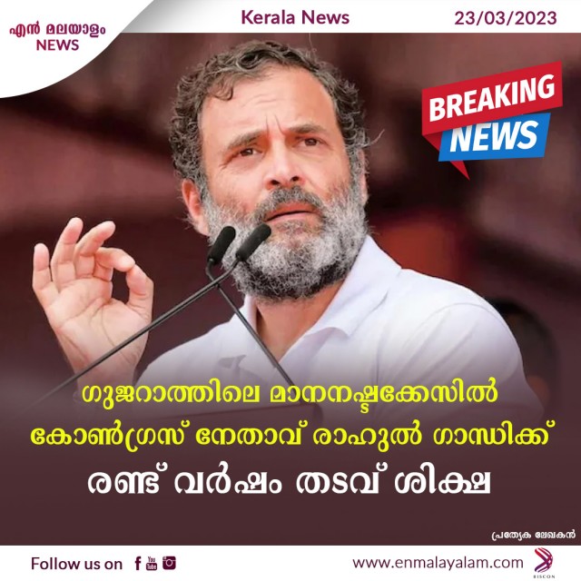 ഗുജറാത്തിലെ മാനനഷ്ടക്കേസിൽ കോൺഗ്രസ് നേതാവ് രാഹുൽ ഗാന്ധിക്ക് രണ്ട് വർഷം തടവ് ശിക്ഷ