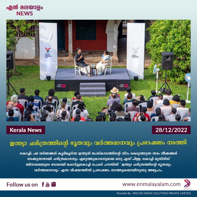 കൊച്ചി: പല വർണങ്ങൾ കൂടിച്ചേർന്ന ഇന്ത്യന് സംസ്കാരത്തിന്റെ നിറം കെടുത്തുന്ന തരം നീക്കങ്ങൾ നടക്കുന്നതായി ചരിത്രകാരനും എഴുത്തുകാരനുമായ മനു എസ് പിള്ള. കൊച്ചി മുസിരിസ് ബിനാലെയുടെ ഭാഗമായി ഫോർട്ടുകൊച്ചി പെപ്പര് ഹൗസില് ' ഇന്ത്യാ ചരിത്രത്തിന്റെ ഭൂതവും വര്ത്തമാനവും' എന്ന വിഷയത്തില് പ്രഭാഷണം നടത്തുകയായിരുന്നു അദ്ദേഹം. സംസ്കാര വൈവിധ്യമാണ് രാജ്യത്തിന്റെ കരുത്തെന്നും അത് പരിപാലിക്കപ്പെടണമെന്നും അദ്ദേഹം അഭിപ്രായപ്പെട്ടു. വിവർത്തക പ്രസന്ന കെ വർമ മോഡറേറ്ററായി.