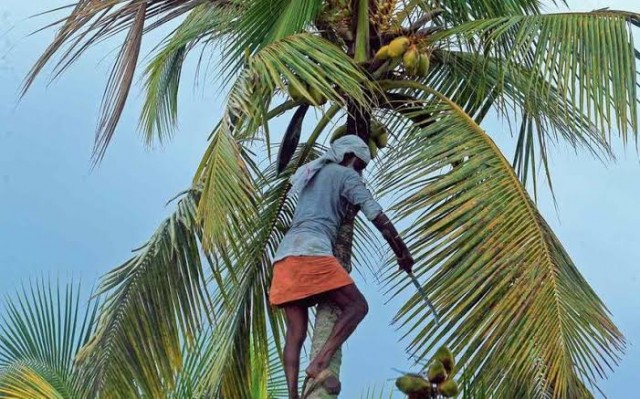 തെങ്ങ് കയറാൻ ആളെ കിട്ടാതെ കേര