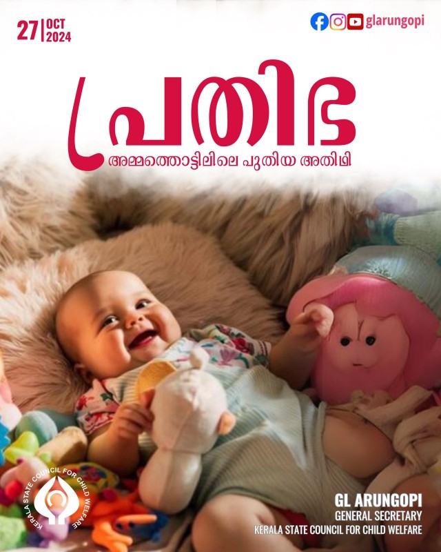 അമ്മത്തൊട്ടിലിൽ “ പ്രതിഭ " ഒക്ടോബർ മാസത്തിൽ അമ്മത്തൊട്ടിലിലെ അഞ്ചാമത്തെ അതിഥിയുമെത്തി.