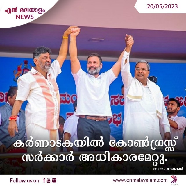 കർണാടകയിൽ കോൺഗ്രസ്സ് സർക്കാർഅധികാരമേറ്റു.