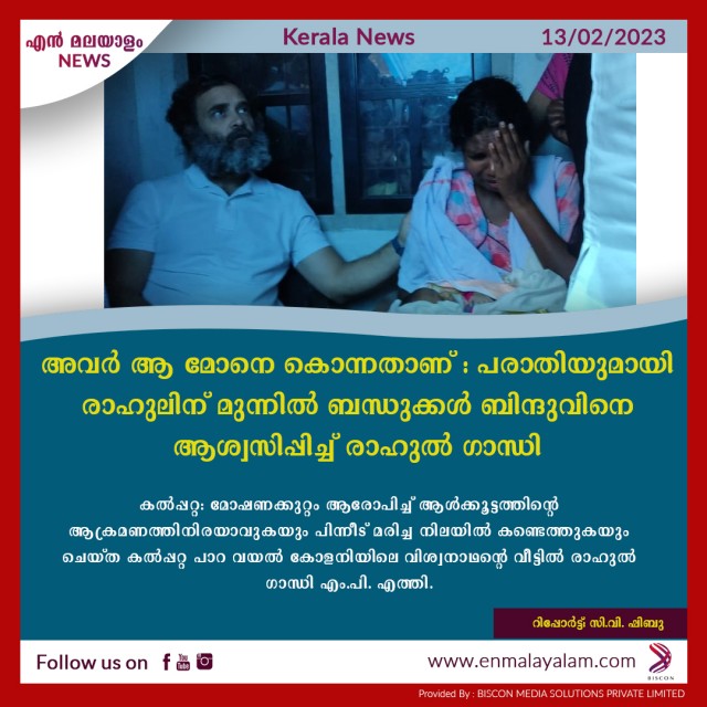 അവർ ആ മോനെ കൊന്നതാണ് : പരാതിയുമായി രാഹുലിന് മുന്നിൽ ബന്ധുക്കൾ ബിന്ദുവിനെ ആശ്വസിപ്പിച്ച് രാഹുൽ ഗാന്ധി