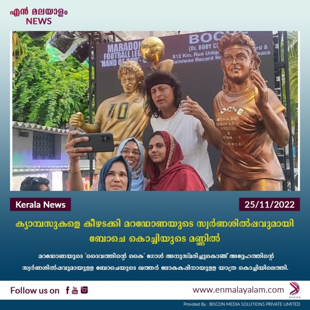 ക്യാമ്പസുകളെ കീഴടക്കി മറഡോണയുടെ സ്വര്ണശില്പ്പവുമായി ബോചെ കൊച്ചിയുടെ മണ്ണില്