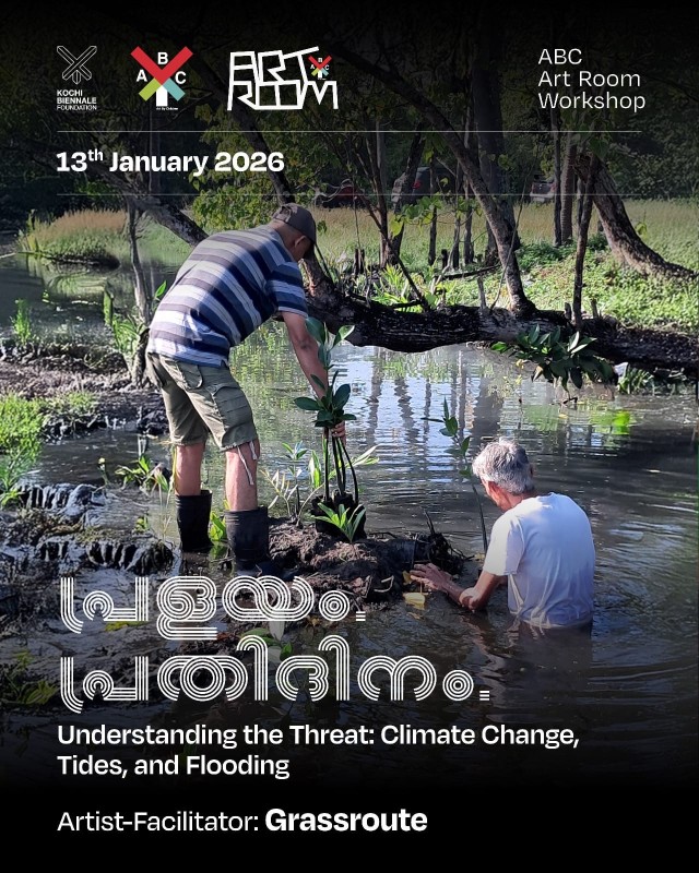 കൊച്ചി-മുസിരിസ് ബിനാലെ 2025-ന്റെ ഭാഗമായി കൊച്ചി ബിനാലെ ഫൗണ്ടേഷന്റെ സംരംഭമായ എബിസി ആർട്ട് റൂമിന്റെ ആഭിമുഖ്യത്തിലാണ് വര്ക്ക്ഷോപ്പ്. തീരദേശ സമൂഹങ്ങൾ നേരിടുന്ന അടിയന്തര പ്രശ്നങ്ങളെ മുൻനിർത്തി നടത്തുന്ന മൂന്ന് ഭാഗങ്ങളുള്ള പരമ്പരയിലെ ആദ്യ പരിപാടിയാണിത്. കാലാവസ്ഥാ വ്യതിയാനം, ഉയരുന്ന സമുദ്രനിരപ്പ്, കനാൽ-പാടം നികത്തൽ തുടങ്ങിയ മനുഷ്യനിർമ്മിത ഇടപെടലുകൾ തീരദേശ പ്രളയ സാധ്യതകളെ എങ്ങനെ വർദ്ധിപ്പിക്കുന്നു എന്നതിനെക്കുറിച്ചാണ് ശില്പശാല പ്രധാനമായും ചര്ച്ച ചെയ്യുന്നത്.