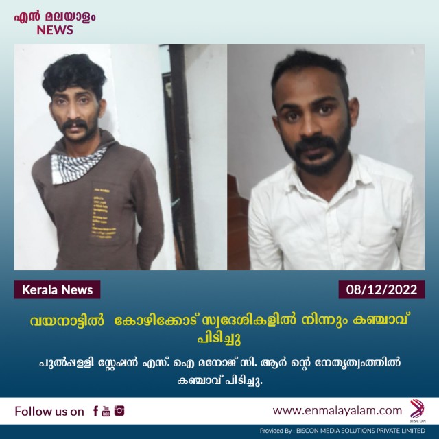 വയനാട്ടിൽ കോഴിക്കോട് സ്വദേശികളിൽ നിന്നും കഞ്ചാവ് പിടിച്ചു