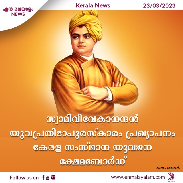 സ്വാമിവിവേകാനന്ദൻ യുവപ്രതിഭാപുരസ്കാരം പ്രഖ്യാപനം കേരളസംസ്ഥാന യുവജനക്ഷേമബോർഡ്