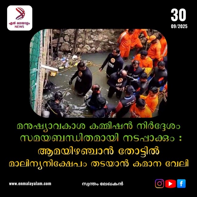 മനുഷ്യാവകാശ കമ്മീഷൻ നിർദ്ദേശം സമയബന്ധിതമായി നടപ്പാക്കും : ആമയിഴഞ്ചാൻ തോട്ടിൽ മാലിന്യനിക്ഷേപം തടയാൻ കമാന വേലി