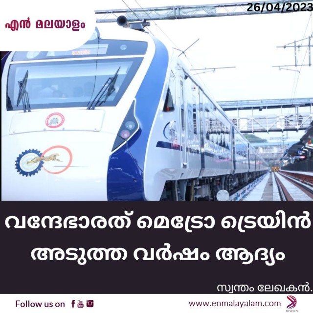 വന്ദേഭാരത് മെട്രോ ട്രെയിൻ അടുത്ത വർഷം ആദ്യം : കേന്ദ്ര റെയിൽവെ മന്ത്രി അശ്വിനി വൈഷ്ണവ് ; സംസ്ഥാനത്തെ റെയിൽവേ സ്റ്റേഷനുകൾ ലോകോത്തര നിലവാരത്തിലെത്തിക്കും.