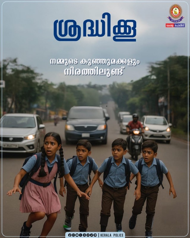സ്കൂൾ തുറന്നു. നമ്മുടെ കുട്ടികളും ഇനി മുതൽ നിരത്തിലുണ്ടാകും. മാതാപിതാക്കൾ ഗതാഗതനിയമങ്ങളെക്കുറിച്ച് കുട്ടികളെ ബോധവാന്മാരാക്കുക. അതിനൊപ്പം ഡ്രൈവർ സുഹൃത്തുക്കളേ.. നിങ്ങളും ഒന്ന് ശ്രദ്ധിക്കണേ...