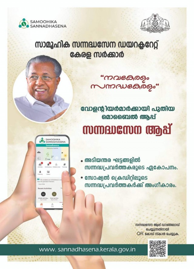 കേരളത്തിലെ സന്നദ്ധ പ്രവര്ത്തകരെ ഒരു കുടക്കീഴില് കൊണ്ടുവരുവാനും അവരുടെ പ്രവര്ത്തനങ്ങള് ഏകോപിപ്പിക്കുവാനും വേണ്ടി സാമൂഹിക സന്നദ്ധസേന ഡയറക്ടറേറ്റിന്റെ "സന്നദ്ധസേന" ആപ്ലിക്കേഷന് സജ്ജമായി. മുഖ്യമന്ത്രി പിണറായി വിജയന് സന്നദ്ധസേന (sannadhasena) മൊബൈല് ആപ്പ് പുറത്തിറക്കി.