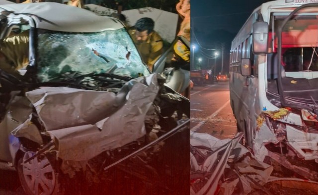 തീര്ത്ഥാടകരുടെ ബസും കാറും കൂട്ടിയിടിച്ച് ഒരു
