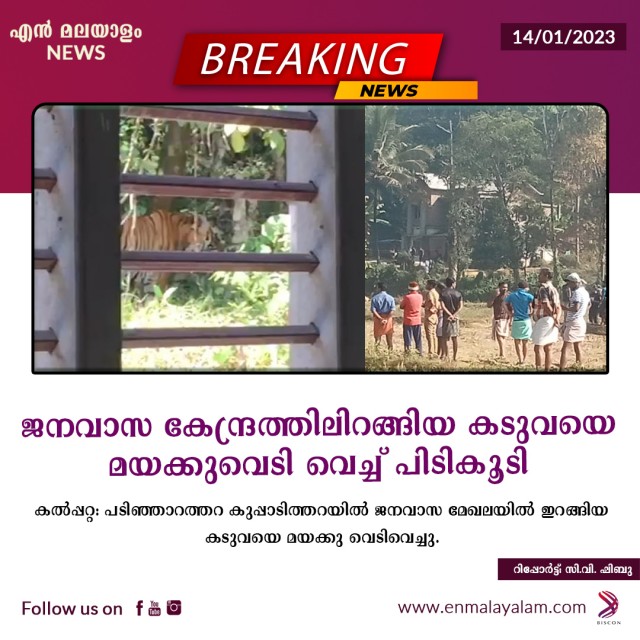 ജനവാസ കേന്ദ്രത്തിലിറങ്ങിയ കടുവയെ മയക്കുവെടി വെച്ച് പിടികൂടി
