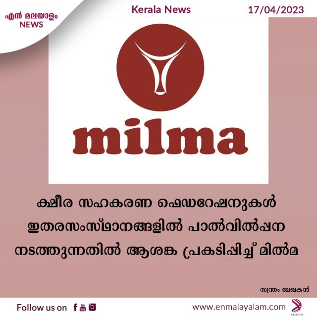 ക്ഷീര സഹകരണ ഫെഡറേഷനുകള് ഇതരസംസ്ഥാനങ്ങളില് പാല്വില്പ്പന നടത്തുന്നതില് ആശങ്ക പ്രകടിപ്പിച്ച് മില്മ