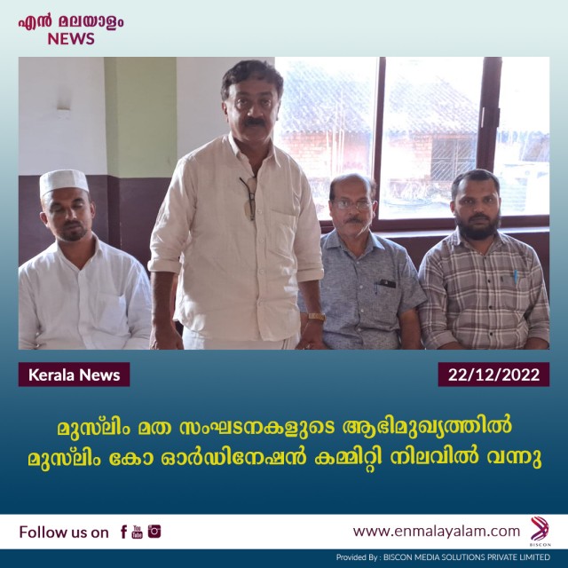 മുസ്ലിം മത സംഘടനകളു ടെ ആഭിമുഖ്യത്തിൽ മുസ്ലിം കോ ഓർഡി നേഷൻ കമ്മിറ്റി നിലവിൽ വന്നു
