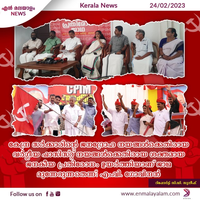 കേന്ദ്ര സർക്കാരിൻ്റെ ജനദ്രോഹ നയങ്ങൾക്കെതിരായ വർഗ്ഗീയ- ഫാസിസ്റ്റ് നയങ്ങൾക്കെതിരായ ശക്തമായ ജനകീയ പ്രതിരോധം ഉയർത്തിയാണ് ജാഥ മുന്നേറുന്നതെന്ന്- എം. വി. ഗോവിന്ദൻ