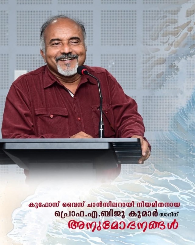 പ്രൊഫ. എ ബിജു കുമാറിനെ കുഫോസ് വൈസ് ചാൻസലറായി നിയമിച്ചു.