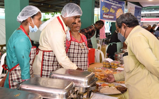 കർണാടക തനത് ഭക്ഷണശാല വടക്കൻ കർണാടകയിലെ ചെറുധാന്യ കർഷരുടെ സസ്യഭക്ഷണശാലയാണ് മേളയിലെ മറ്റൊരു ആകർഷണം. ചാമ, റാഗി, തിന, കമ്പ്, ചോളം, വരഗ്, പനിവരഗ്, കുതിരവാലി എന്നീ ചെറുധാന്യങ്ങളുപയോഗിച്ചുള്ള തനത് വിഭവങ്ങൾ ഇവിടെ ലഭ്യമാണ്. ചോളപ്പം, റാഗി പൂരി, പലഹാരങ്ങൾ, ബാജി എന്നിവയുണ്ട്. സ്ത്രീകൾ ഉൾപ്പെടെ 12 പേരാണ് അവർ കൃഷി ചെയ്ത ചെറുധാന്യങ്ങളുമായി മേളക്ക് എത്തിയിട്ടുള്ളത്.