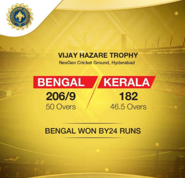 വിജയ് ഹസാരെ ട്രോഫിയിൽ കേരളത്തിന് ബംഗാളിനോട് തോൽവി