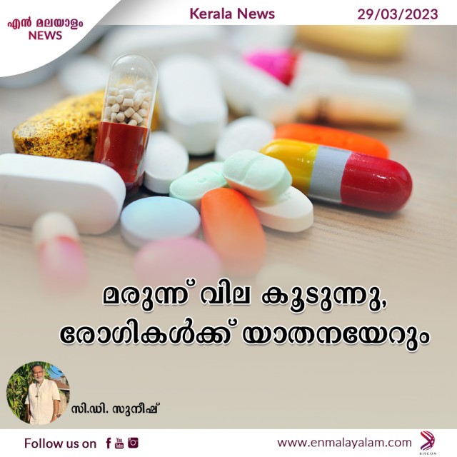 ഇന്ത്യയിൽ ആവശ്യമരുന്നുകളിൽ 12 ശതമാനം വർദ്ധന ഏപ്രിൽ ഒന്നു മുതലാണ് വിലയിൽ വൻ കുതിപ്പുണ്ടാകുക. ആവശ്യമരുന്ന് പട്ടികയിൽ ഒൾപ്പെടാത്ത മരുന്നുകൾക്കടക്കം കൂട്ടാൻ നൽകാൻ അനുമതി നൽകുന്നത്. ഇത്രയും വില വർദ്ധിക്കുന്ന ആദ്യമാകുന്നത് രോഗികൾക്ക് വലിയ യാതനയാകും. പ്രമേഹം ,അമിത രക്ത സമ്മർദ്ദം ,ഹൃദ്രോഗം ,കൊളസ്ട്രോൾ ,തുടങ്ങി ജീവിതശൈലി രോഗമുള്ളവർക്ക് മരുന്ന് ഒഴിവാക്കാൻ പറ്റില്ല, ഇത് വലിയ പ്രശ്നമാണ് സാധാരണക്കാരായ രോഗികൾക്കുണ്ടാക്കുക. ഒന്നിലധികം അസുഖമുള്ളവർ ക്ക് ചില മരുന്നുകൾ ഒഴിവാക്കാൻ കഴിയില്ല. അർബുദ മരുന്നുകൾ, വേദന സംഹാരികൾ, ആൻറിബയോട്ടിക്കുകൾ ,അലർജി മരുന്നുകൾ നാഡിസംബഡ മരുന്നുകൾ ഇവക്കെല്ലാം അസാധ്യമായ വിലക്കയറ്റമാണ് ഉണ്ടാക്കുക. ദൈനം ദിന അതിജീവനത്തിന് നട്ടം തിരിയുമ്പോൾ ,മരുന്ന് വില കൂടി വൻ തോതിൽ വർദ്ധിക്കുമ്പോൾ പാവപ്പെട്ട ,സാധാരണക്കാരുടെ ജീവിതം കൂടുതൽ ദുസ്സഹമാകും.