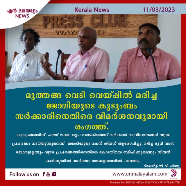 മുത്തങ്ങ വെടി വെയ്പ്പിൽ മരിച്ച ജോഗിയുടെ കുടുംബം സർക്കാരിനെതിരെ വിമർശനവുമായി രംഗത്ത്.