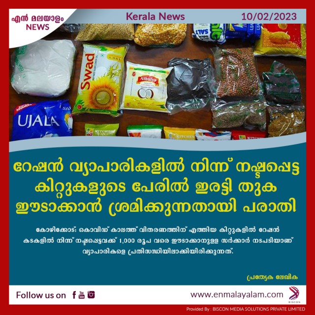 റേഷന് വ്യാപാരികളില് നിന്ന് നഷ്ടപ്പെട്ട കിറ്റുകളുടെ പേരില് ഇരട്ടി തുക ഈടാക്കാന് ശ്രമിക്കുന്നതായി പരാതി