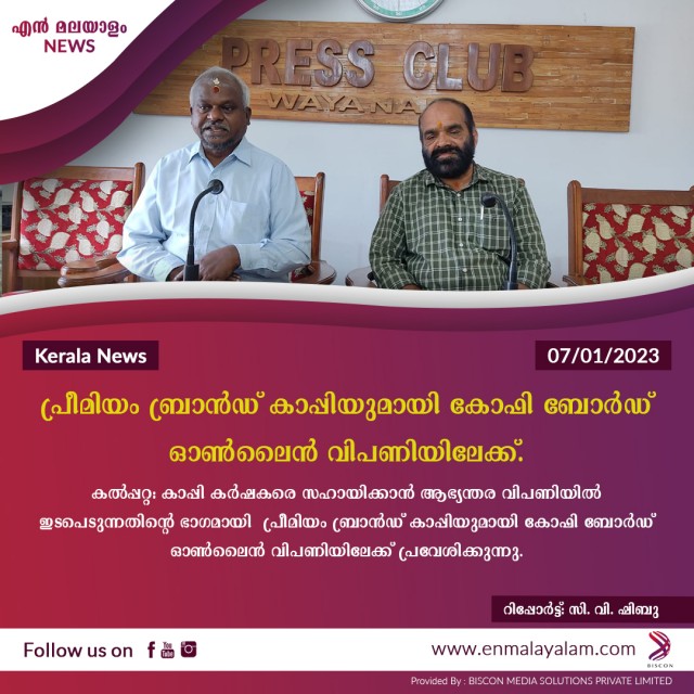 കൽപ്പറ്റ : കാപ്പി കർഷകരെ സഹായിക്കാൻ ആഭ്യന്തര വിപണിയിൽ ഇടപെടുന്നതിൻ്റെ ഭാഗമായി പ്രീമിയം ബ്രാൻഡ് കാപ്പിയുമായി കോഫി ബോർഡ് ഓൺലൈൻ വിപണിയിലേക്ക് പ്രവേശിക്കുന്നു. കോഫി ബോർഡിൻ്റെ നൈപുണ്യ വികസന പദ്ധതിയിൽ ഉൾപ്പെടുത്തി കോഫി ശാസ്ത്ര, ബാരിസ്റ്റ സ്കിൽസ്, സംരംഭകത്വ വികസനം, കാപ്പി ചെറുകിട വ്യാപാരം എന്നീ ആഭ്യന്തര വിപണി പ്രോത്സാഹന പദ്ധതികളാണ് കോഫി ബോർഡ് നടപ്പാക്കുന്നതെന്ന് കോഫി ബോർഡ് മെമ്പർ സുരേഷ് അരി മുണ്ട, ജോയിൻ്റ് ഡയറക്ടർ ഡോ.എം. കറുത്തമണി എന്നിവർ പറഞ്ഞു. അന്താരാഷ്ട്ര ഓൺലൈൻ വിപണന ശൃംഖലകളായ ആമസോൺ, ഫ്ളിപ്പ് കാർട്ട് എന്നിവ വഴി പ്രീമിയം ബ്രാൻഡ് കാപ്പി ലഭ്യമാക്കിയിട്ടുണ്ട്. ഭൗമ സുചിക പദവി ലഭിച്ച കൂർഗ് അറബിക്ക, വയനാട് റോബസ്റ്റ, ചിക്കമംഗ്ളൂർ അറബിക്ക, അറബിക്ക - റോബസ്റ്റ ബ്ലെൻഡ് എന്നീ കാപ്പി ഇനങ്ങൾ.കോഫീസ് ഓഫ് ഇന്ത്യ എന്ന ബ്രാൻഡിലും ലഭിക്കും. ഈ കാപ്പികളുടെ രുചിയിലൂടെ ഉപഭോക്താക്കളെ തൃപ്തി പ്പെടുത്താൻ മികച്ച കാപ്പിത്തോട്ടങ്ങളിൽ നിന്നുള്ള കാപ്പി ആണ് ബോർഡ് തിരഞ്ഞെടുക്കുന്നതെന്ന് ഇവർ പറഞ്ഞു. ചെറുകിട സംരംഭകർക്ക് കോഫി റോസ്റ്റിംഗ്, ഗ്രൈൻഡിംഗ്, പാക്കിംഗ് തുടങ്ങിയ മേഖലകളിൽ സഹായം നൽകി വരുന്നുണ്ടന്നും ഇവർ പറഞു.