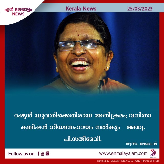 റഷ്യന് യുവതിക്കെതിരായ അതിക്രമം; വനിതാ കമ്മിഷന് നിയമസഹായം നല്കും - അഡ്വ. പി.സതീദേവി.