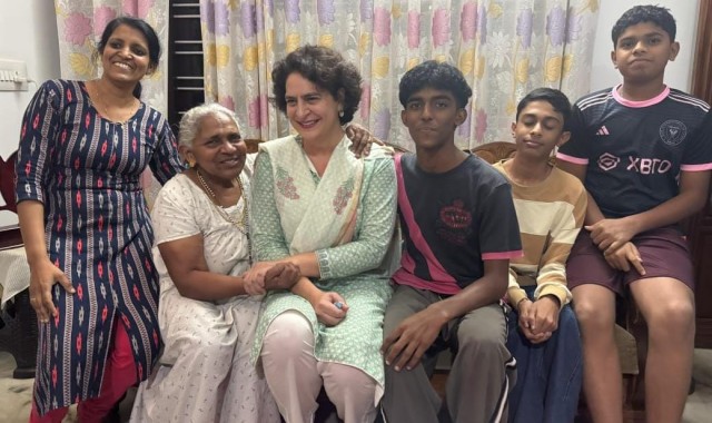 ത്രേസ്യയുടെയും കുടുംബത്തിൻ്റെയും ഹൃദയം കീഴടക്കി ബത്തേരിയിലെ വീട്ടിൽ പ്രിയങ്കാ ഗാന്ധിയുടെ അപ്രതീക്ഷിത സന്ദർശനം നടത്തിയത് ചൊവ്വാഴ്ച രാത്രിയോടെയാണ്.