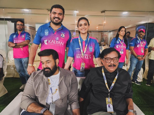ഗ്രൗണ്ടിൽ ഇഞ്ചോടിഞ്ച് പോരാട്ടം. പിന്തുണയുമായി താരങ്ങൾ സ്റ്റേഡിയത്തിലും. ട്രിവാൺഡ്രം - കൊച്ചി മത്സരം ശ്രദ്ധേയമായത് താരസാന്നിധ്യം കൊണ്ട് കൂടിയാണ്. ടീമിന്റെ ഉടമസ്ഥർ കൂടിയായ സംവിധായകന് പ്രിയദര്ശന്, കല്യാണി പ്രിയദര്ശന്, കീര്ത്തി സുരേഷ് തുടങ്ങിയവർ മത്സരം കാണാൻ സ്റ്റേഡിയത്തിലുണ്ടായിരുന്നു. ഒപ്പം താരപ്രഭയഭയുടെ മാറ്റ് കൂട്ടി സാക്ഷാൽ മോഹൻലാലും.